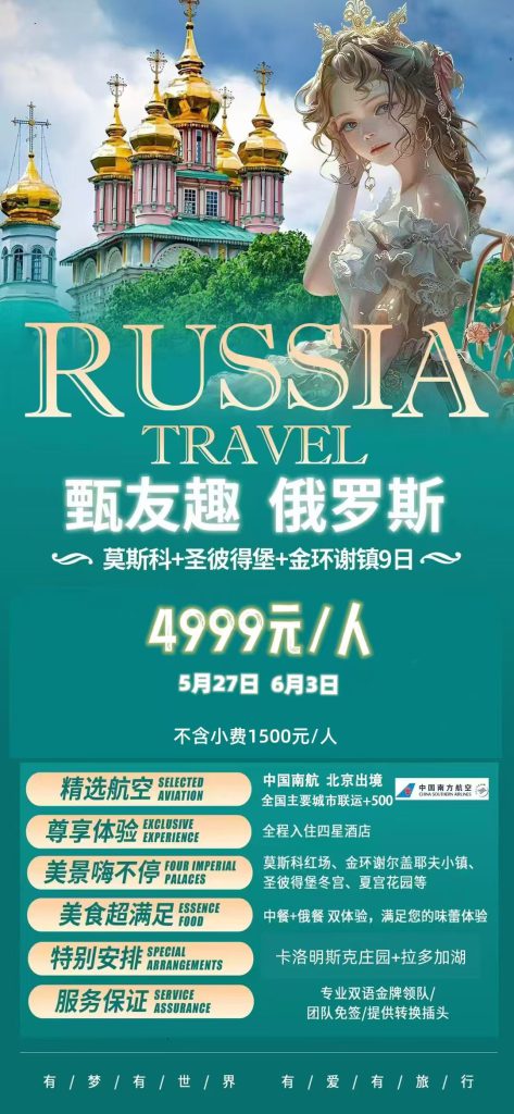 RUSSTA TRAVEL甄友趣 俄罗斯莫斯科+圣彼得堡+金环谢镇9日